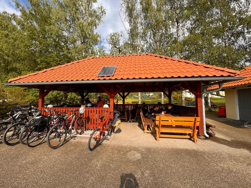 Po cestě tradiční zastávka na benzínce, vybílení regálů a honem na ubikaci - rekreační středisko Lesák. Kvalitní strava k obědu, lehký odpočinek, kontrola a příprava strojů před první zatěžkávací zkouškou. Jízda zručnosti proběhla v poklidném režimu. Následovala krátká vyjížďka po okolí, nakouknutí do Rakouska, seznámení s terénem, v některých případech již pěkně zblízka. Proběhla i návštěva legendární restaurace "U Sumečka". Friťáky nestíhaly, apetit našich cyklistů byl nevídaný. Večeře, pár drobných společenských her a týmových soutěží. Poté již následovalo jen seznámení s ložním prádlem a nakonec všichni usnuli spánkem spravedlivých.