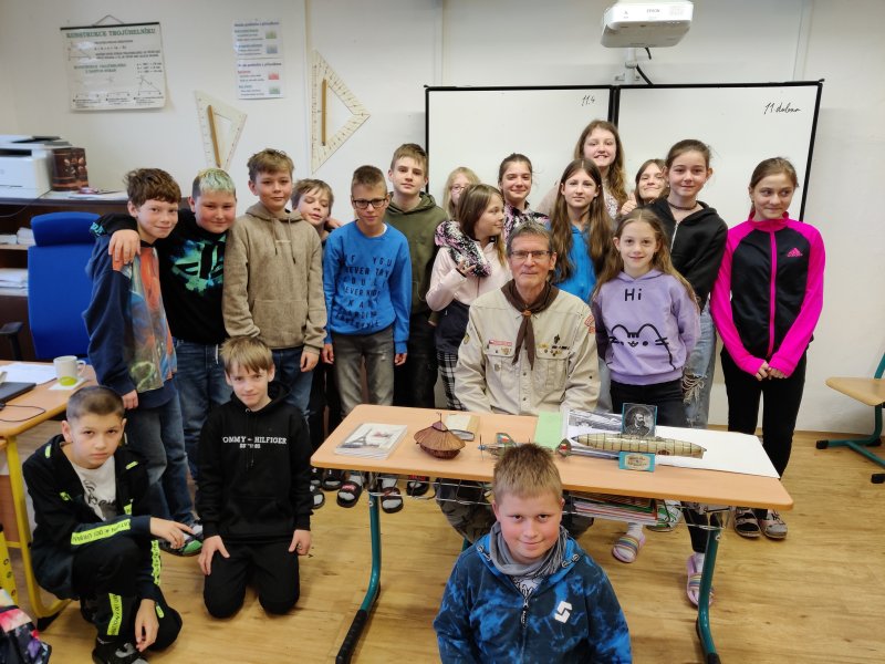 V úterý 11. dubna 2023 si žáci 5. C pozvali na besedu historika pana Jiřího Bohatu. Se zájmem si vyslechli poutavé vyprávění o historii kosteleckých domů, zvláště pak naší školy. Nechyběly zajímavosti a pověsti spojené s majiteli černokosteleckého zámku. Žáci si připravili otázky, na které měl pan Bohata vždy obsáhlou odpověď. Nechyběla zmínka o významných osobnostech našeho města a na závěr několik zajímavostí o Skautu, jehož členem pan Bohata (Datel) je. Ostatní páté třídy nemusí být smutné, i pro ně jsou besedy v následujících dnech připraveny.