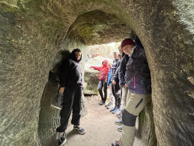 Probudili jsme se do mokrého rána, proto se dopolední aktivity konaly v penzionu v tělocvičně. Nejprve dostala každá třída sáček syrových špaget a maršmelounů. Byl to stavební materiál pro nejvyšší stavbu. V limitu 30 minut tento úkol nejlépe splnila třída 6. C. Po vyřešení slovní úlohy jsme si ještě zasoutěžili při vyřazovací hře Kámen, nůžky, papír. Odpolední program jsme museli upravit s ohledem na uplakané počasí a zvolit trasu co nejméně mokrou trávou. Přesto jsme navštívili obec Skály v rozhlédli se po okolní krajině z vyhlídky zříceniny kamenného hradu Bischofstein. Zpáteční cesta rychle ubíhala, protože byla z kopce dolů a většina se těšila na buchtičky se šodó.